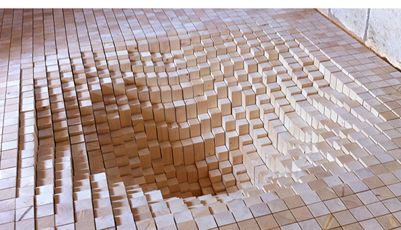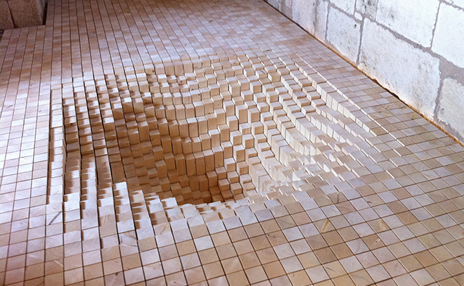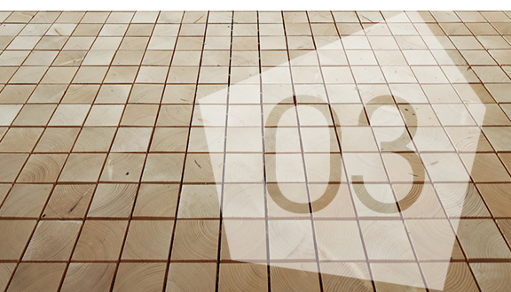 froideur minérale... Ce plancher « bois de bout » renvoie directement