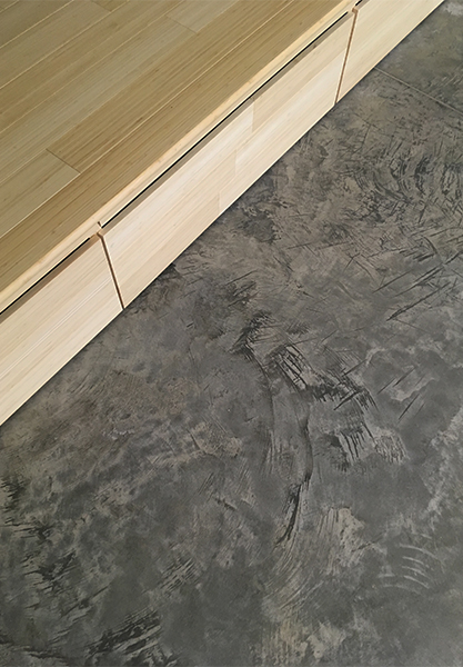 central qui dessert tous les espaces. Un sol ciment vient unifier l’ensemble du